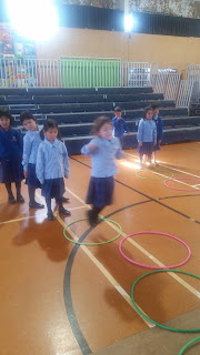 We started with some fun games. Then we learnt some techniques to use when we jump. We have to swing our arms, spring with our legs and land like we are on a motorbike. Here's some photos of us in action.